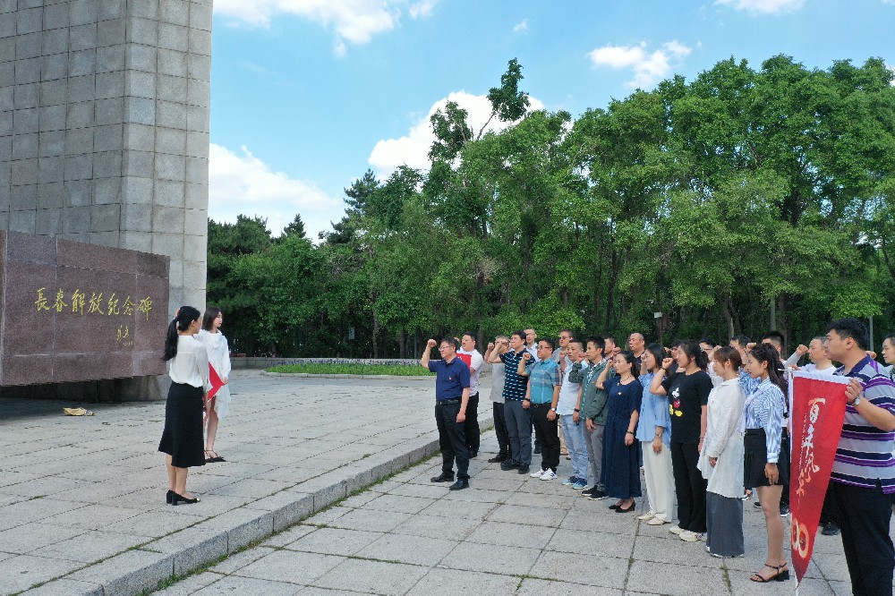 黨員們首先來到長春解放紀(jì)念碑前,全體黨員佩戴黨徽在解放紀(jì)念碑前莊嚴(yán)肅立,緬懷先輩的光輝業(yè)績,面向黨旗,在領(lǐng)誓人張繼真同志的帶領(lǐng)下,“我志愿加入中國共產(chǎn)黨,擁護(hù)黨的綱領(lǐng)……”,莊嚴(yán)舉起的右手,鏗鏘有力的誓言,回蕩在解放紀(jì)念碑周圍。