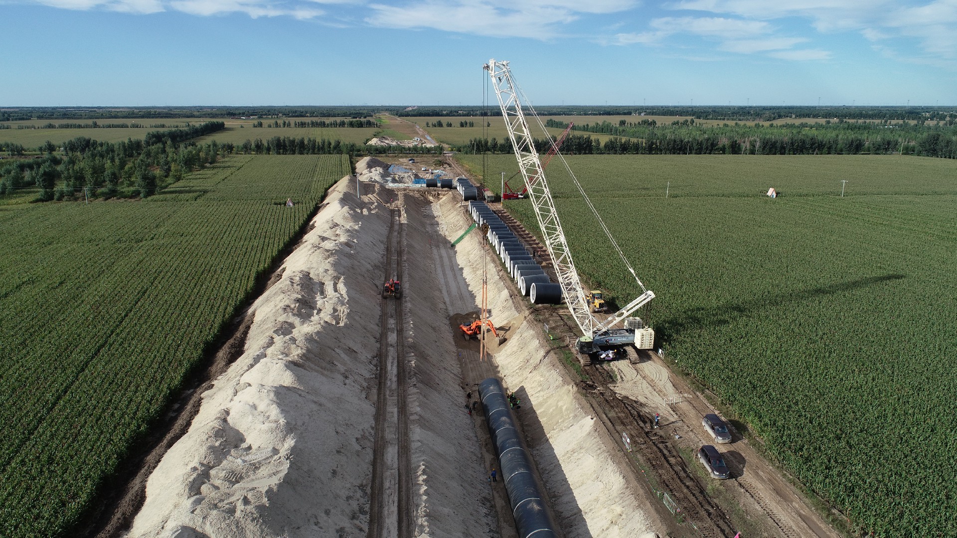 我單位施工段為平原區(qū)管線段樁號(hào)T264+104.97-T275+474.97,線路長(zhǎng)度11.37km,均為PCCP管線施工,單管同槽鋪設(shè),管徑DN3200。