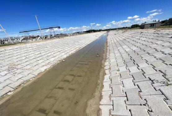 吉林西部供水工程為國務(wù)院172項(xiàng)重大水利工程之一,也是吉林省排名前列以恢復(fù)和改善區(qū)域生態(tài)環(huán)境為目的的重大生態(tài)水利工程,乾安縣繞城補(bǔ)水工程二標(biāo)包括4.5km渠道護(hù)砌、路下涵、水閘、跌水、豎井、蝶閥井、0.7km管線工程,合同額2788萬元。