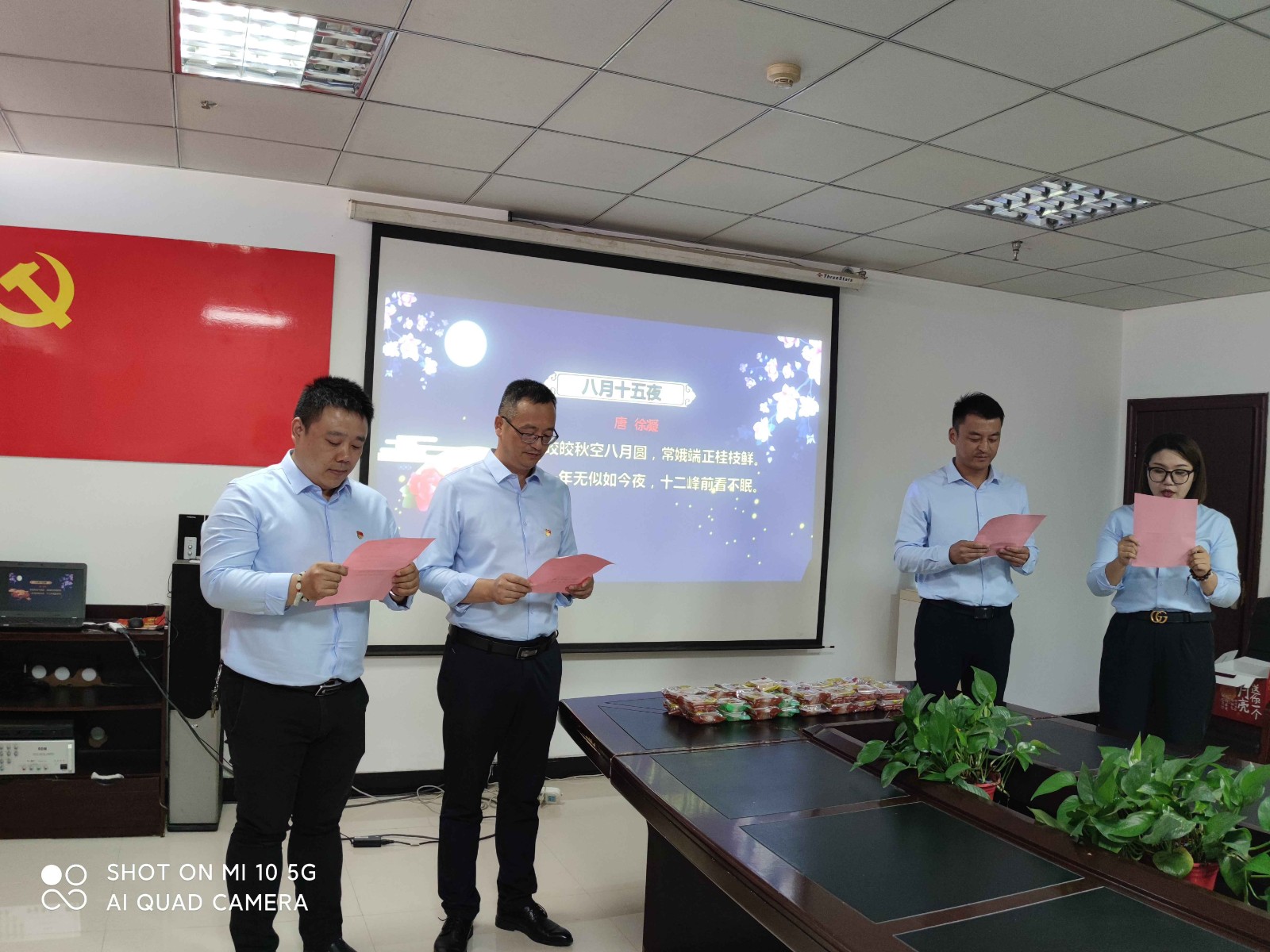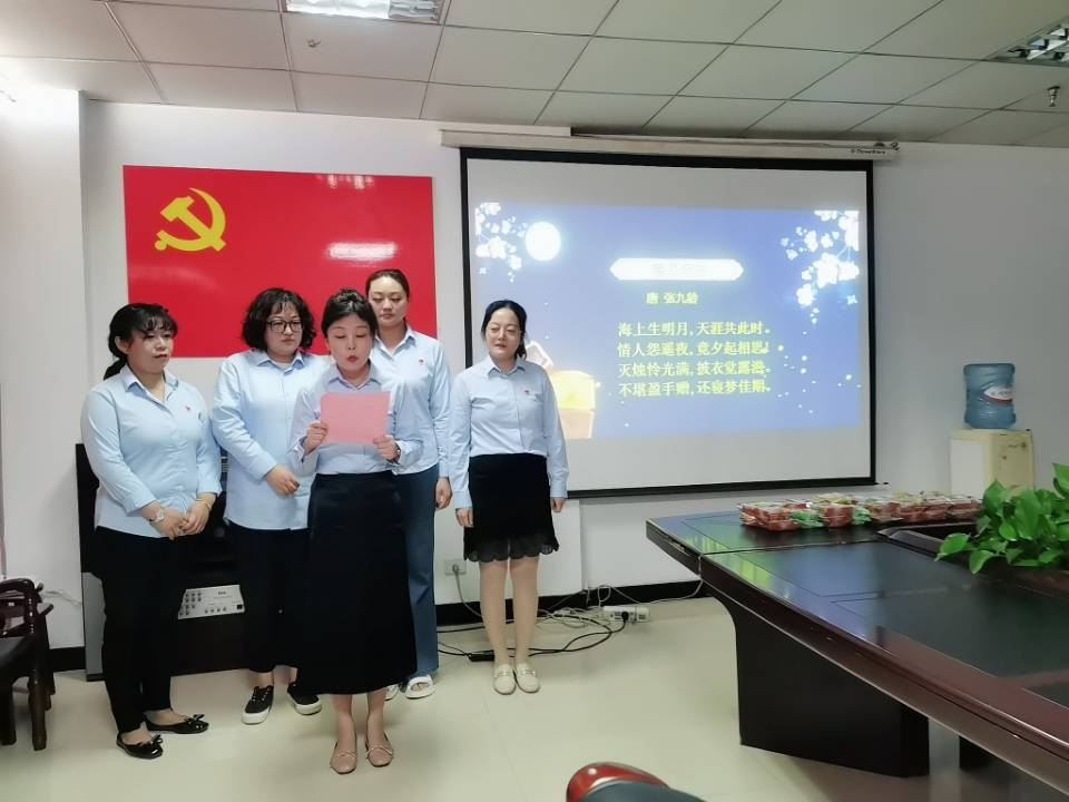 機(jī)關(guān)黨支部四個黨小組依次朗誦了《望月懷古》、《中秋》、《八月十五夜》、《一剪梅·中秋之月》等與“中秋”有關(guān)的詩詞,小組成員們飽含深情,熱情高亢的朗誦贏得了大家陣陣掌聲。詩詞朗誦結(jié)束后,又一起分享了中秋月餅,大家在輕松愉悅的氛圍中感受著中秋節(jié)傳統(tǒng)文化的魅力。