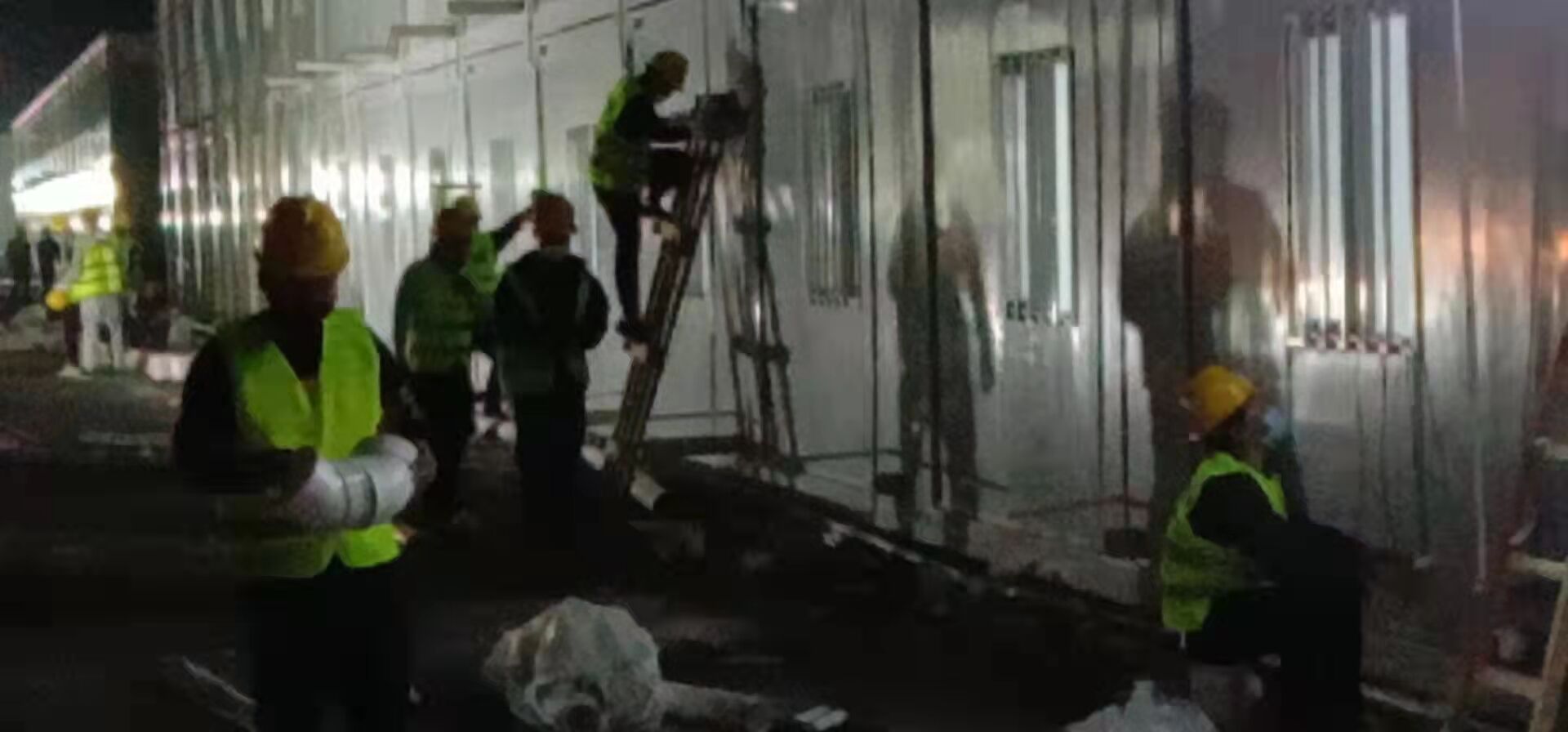 當(dāng)前,突擊隊(duì)員們?nèi)砸挂岳^日地奮戰(zhàn)在鳳臺(tái)方艙醫(yī)院建設(shè)現(xiàn)場(chǎng)。